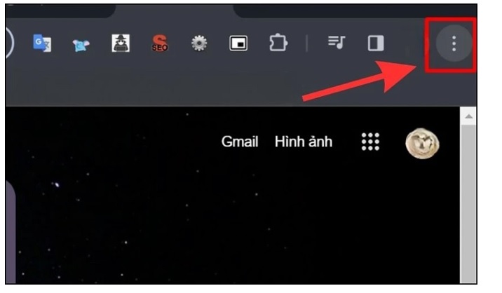 Bước 1: Đầu tiên, bạn hãy thực hiện việc khởi động trình duyệt Google Chrome lên trên thiết bị. Tiếp theo, bạn hãy nhấp vào biểu tượng dấu 3 chấm nằm ở vị trí góc trên phía bên phải như hình bên dưới: