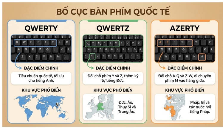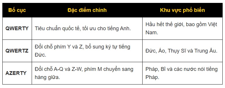 Thứ 2 là So sánh các loại bố cục bàn phím phổ biến