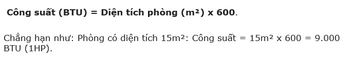 Để thực hiện việc lựa chọn công suất máy lạnh phù hợp với diện tích phòng thì bạn có thể tham khảo công thức sau đây nhé: