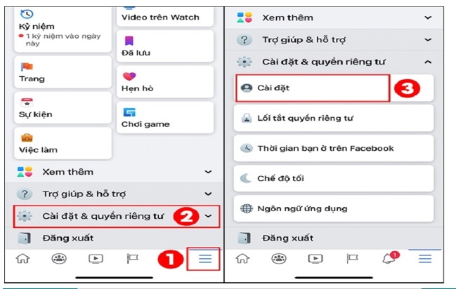 Bước 1: Ở tại giao diện trang chủ của tài khoản Facebook. Bạn thực hiện nhấp vào biểu tượng 3 dấu gạch ngang nằm góc phía dưới ở bên phải màn hình. Sau đó, bạn lần lượt click vào tùy chọn Cài đặt & quyền riêng tư. Bạn nhấn chọn Cài đặt.