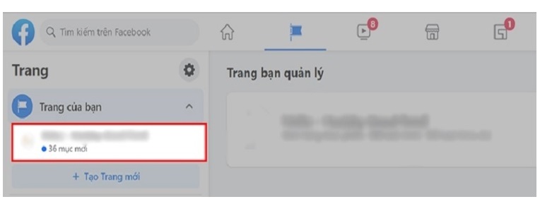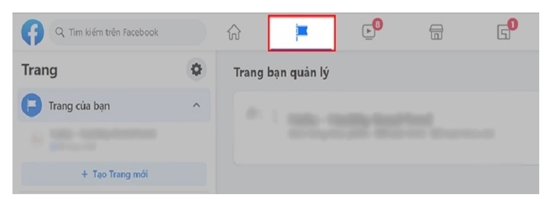 Bước 1: Ở tại giao diện trang chủ của Facebook thì bạn nhấp vào biểu tượng Trang như hình bên dưới: