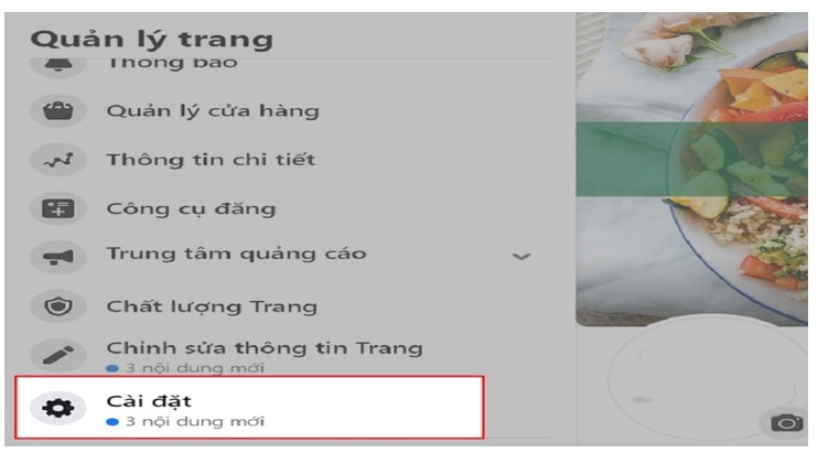 Bước 3: Sau đó, bạn thực hiện việc cuộn màn hình máy tính xuống. Rồi bạn chọn ngay vào mục Cài đặt nằm bên dưới phần Quản lý trang.