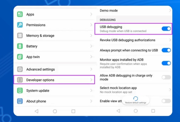 Bước 3: Thực hiện việc bật chế độ Gỡ lỗi USB (USB Debugging)