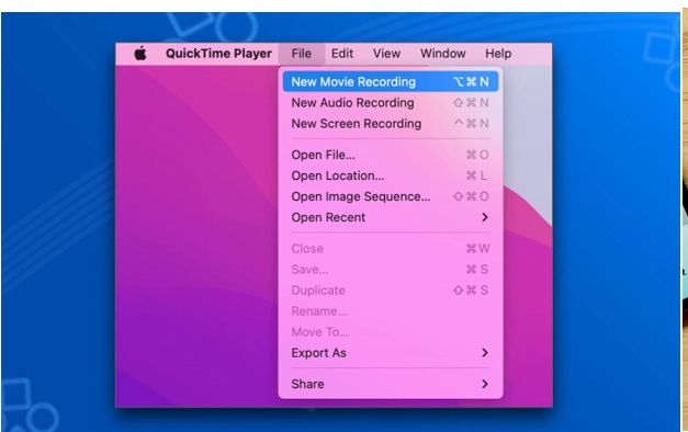 Trên Mac, bạn thực hiện mở QuickTime Player. Bạn bấm chọn File. Rồi bấm chọn New Movie Recording.
