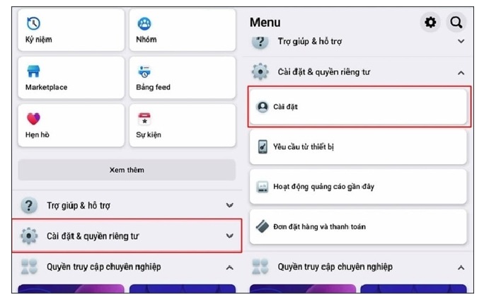 • Bước 1: Bạn hãy nhấn vào ảnh đại diện ở góc trên phía bên phải. Sau đó thì bạn chọn Cài đặt và quyền riêng tư. Rồi bạn bấm chọn Cài đặt.