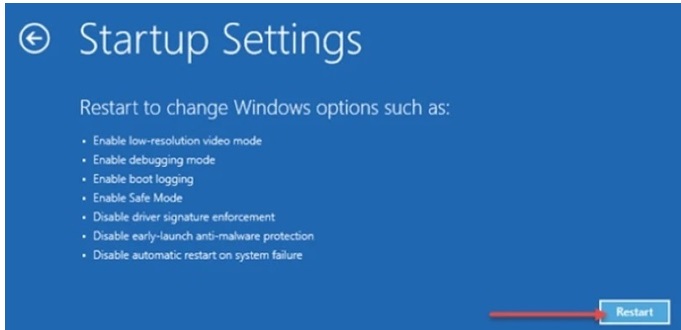 Bước 4: Tiếp theo, các bạn có thể tiến hành theo những thao tác tương tự như cách 2 ở trên. Bạn lần lượt thực hiện việc chọn vào mục See more recovery options. Bạn bấm chọn vào mục Startup Settings. Và hãy nhấn vào nút Restart để hoàn tất.