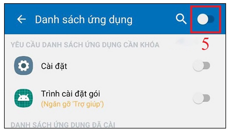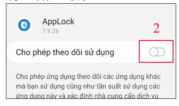 Bước 5: Bạn thực hiện ấn bật nút cho phép phần mềm Applock khóa lại ứng dụng đó nhé.
