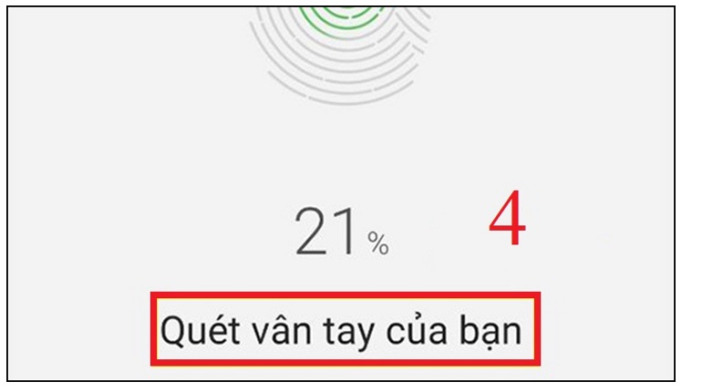 Bước 4: Quét vân tay của bạn theo như sự hướng dẫn sẵn có của hệ thống. Bạn cần ấn hoàn tất để thêm vân tay.