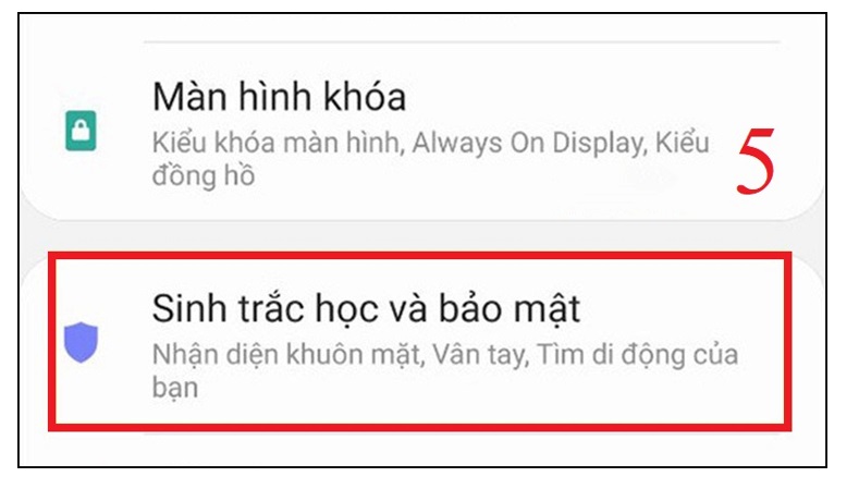 Bước 5: Tiếp theo thì từ giao diện Cài đặt. Bạn thực hiện việc chọn Sinh trắc học và bảo mật.