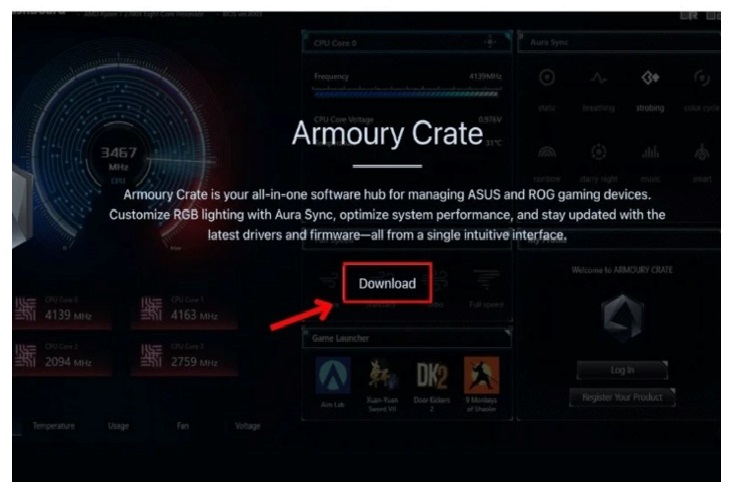 Bước 1: Bạn thực hiện việc kiểm tra xem laptop đã được cài đặt ARMOURY CRATE hoặc là chưa. Nếu là chưa thì bạn hãy truy cập vào trang chủ ASUS và nhấn chọn đúng phiên bản hệ điều hành. Rồi tải về bộ cài cho phù hợp.
