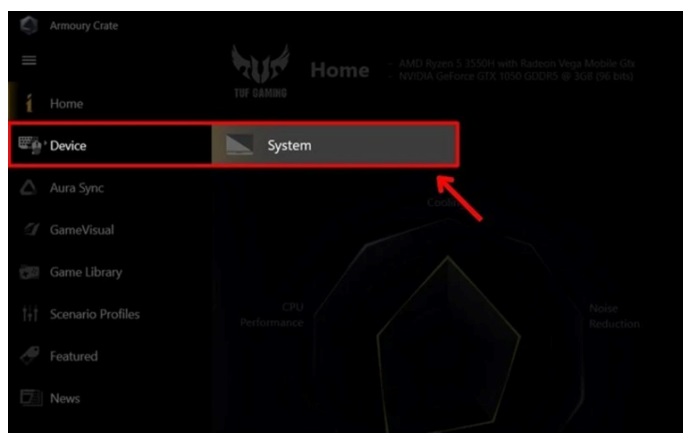 Bước 3: Ở tại giao diện chính thì bạn chọn mục Device. Bạn tiếp tục nhấn vào phần System để truy cập được những tùy chọn thiết lập.