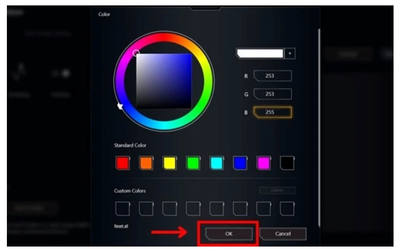 Bước 5: Bạn hãy nhấn OK để lưu lại cài đặt. Bên cạnh đó thì bạn vẫn có thể dùng tổ hợp Fn + mũi tên lên/xuống để có thể thực hiện điều chỉnh nhanh độ sáng đèn bàn phím.