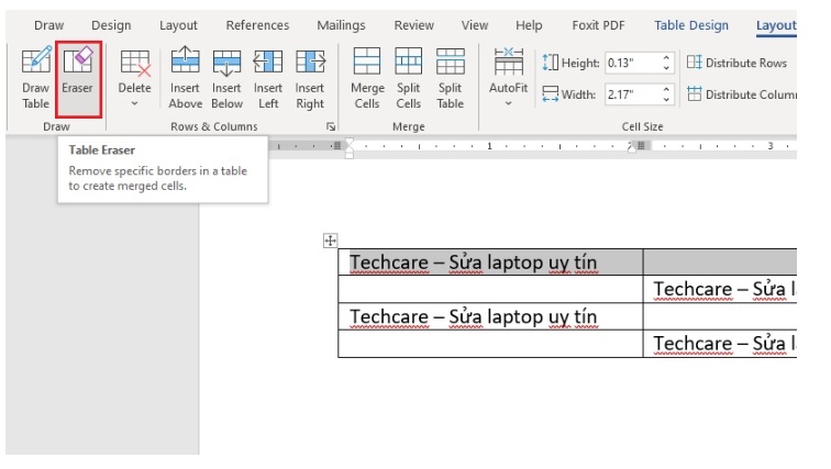 Cách thực hiện việc xóa đường kẻ trong Word bằng công cụ Eraser
