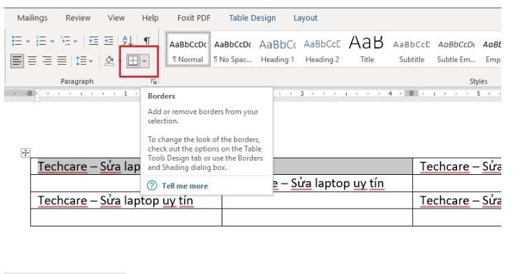 Cách thực hiện việc xóa đường kẻ trong Word bằng công cụ Borders