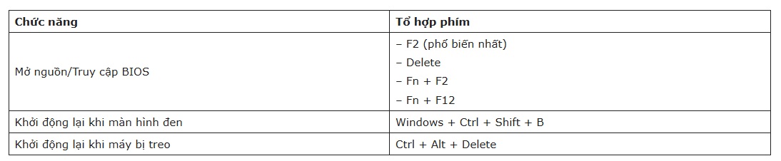 Tổ hợp những tổ hợp phím để mở nguồn laptop Asus