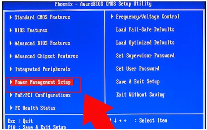 Bước 3: Bạn nhấn chọn mục Power Management Setup hoặc là Advanced Power Management (APM) hay là tương tự và nhấn Enter.