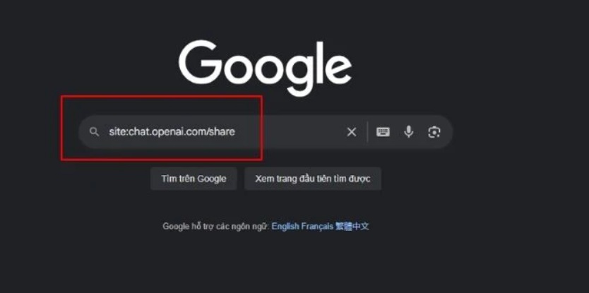 Bước 2: Bạn thực hiện nhập ‘site:chat.openai.com/share’ được kèm theo những từ khóa đặc trưng trong cuộc trò chuyện của bạn.