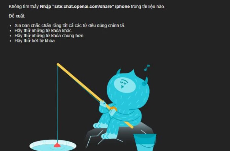 Ngược lại, nếu là thấy hiện thông báo: ‘Không tìm thấy site:chat.openai.com/share trong tài liệu nào’ thì tức là đoạn chat của bạn không bị rò rỉ trên Google.