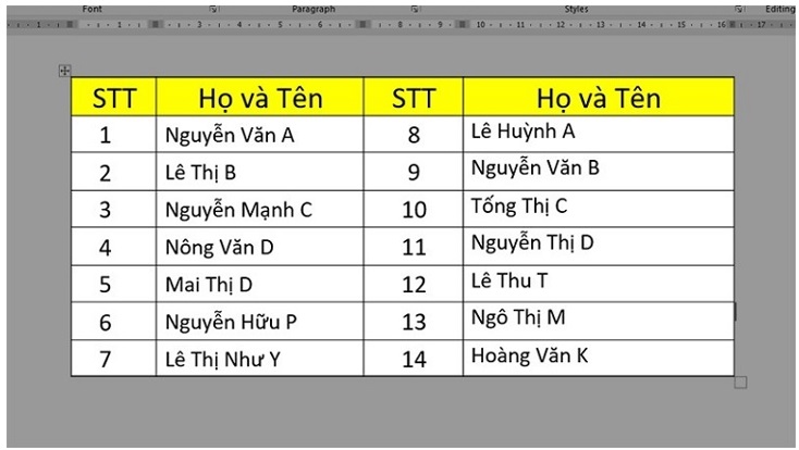 Bước 5: Kết quả bây giờ thì bạn sẽ nhận được sau khi bạn đánh số thứ tự ở trong Word cho 2 cột như sau: