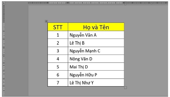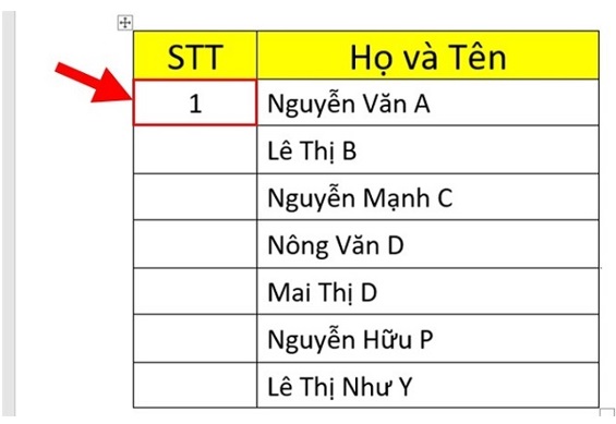 Bước 7: Vậy là bạn đã tiến hành được việc đánh số thứ tự trong bảng Word cho cột hoàn thành. Và kết quả bạn nhận được sẽ như sau:
