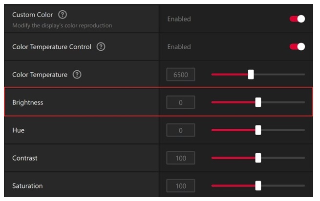 • Bước 4: Một loạt các thanh trượt dùng để điều chỉnh màu sắc sẽ xuất hiện. Bạn tìm thanh Brightness. Và bạn thực hiện kéo để đạt được mức sáng mong muốn.