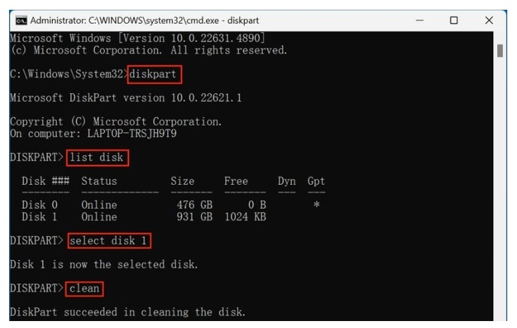 • Bước 5: Bạn hãy thực hiện nhập lệnh clean. Và bạn nhấn vào Enter để xóa sạch được những cấu hình cũ bị lỗi.