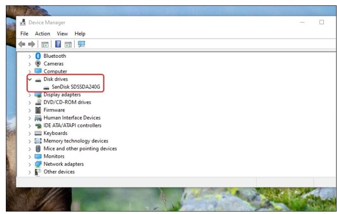 - Bước 2: Bạn thực hiện việc tìm và nhấp đúp chuột vào mục Disk drives. Ở tại cửa sổ sẽ xổ xuống cho bạn một danh sách tên mã sản phẩm của những ổ cứng đang được thực hiện lắp trong máy.