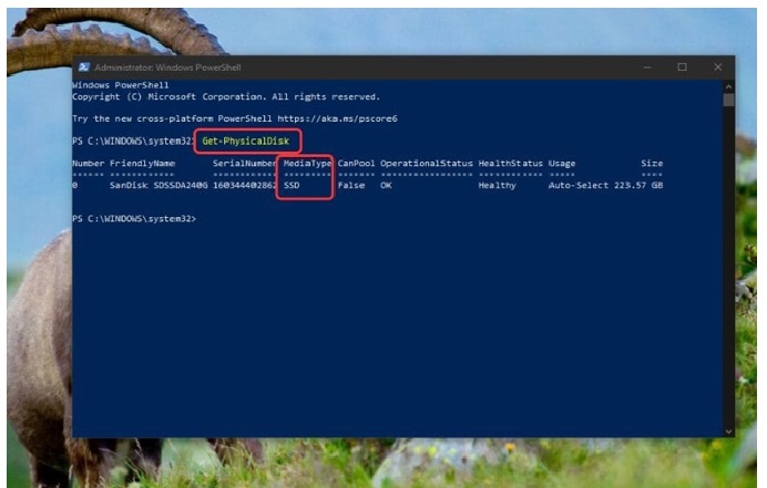 - Bước 4: Bạn hãy quan sát cột MediaType để có thể thực hiện xem dung lượng lưu trữ ở hiện tại đang chạy ở trên chuẩn SSD hoặc HDD.