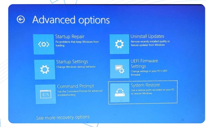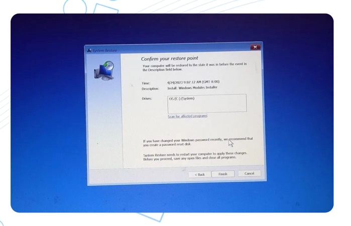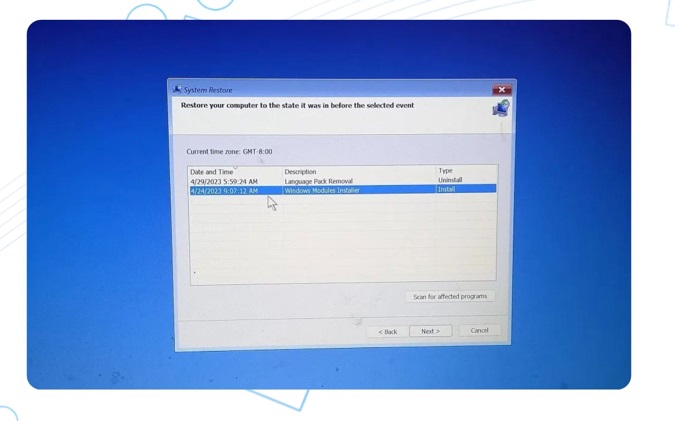 - Bạn thực hiện chọn điểm khôi phục trước khi sự cố xảy ra.