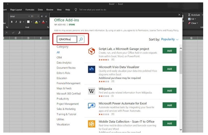 Bước 3: Cuối cùng, bạn thực hiện việc nhấn nút Add nằm bên cạnh để cho quá trình cài đặt QR4Office được hoàn tất nhé.