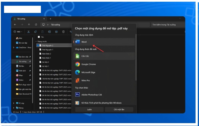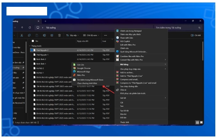 Bước 1: Đầu tiên, bạn thực hiện việc nhấn chuột phải vào file PDF bạn muốn đặt mật khẩu. Bạn chọn vào Open with. Bạn nhấn chọn vào mục Chọn chương trình khác.