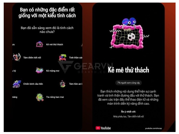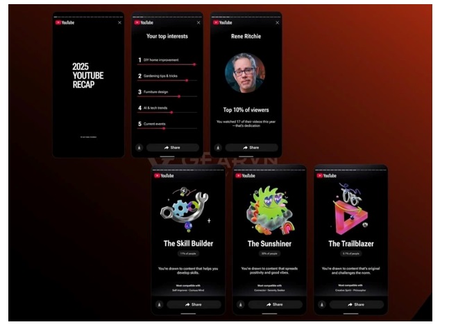 YouTube Recap 2025 còn phân loại cho người dùng theo như “tính cách xem video” như Adventurer (Người thám hiểm) hay là Skill Builder (Thợ luyện tay nghề) hay Creative Spirit (Tâm hồn sáng tạo) và v.v. dựa trên thể loại nội dung mà bạn thường theo dõi nhiều nhất.