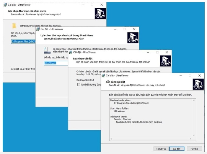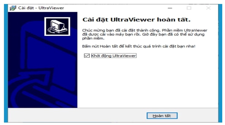 Cuối cùng thì bạn bấm vào Cài đặt để tiến hành việc cài đặt UltraViewer. Và bạn bấm vào Hoàn tất khi hoàn tất quá trình cài đặt nhé.