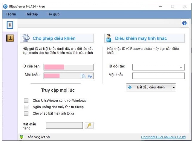 Để thực hiện việc kết nối và điều khiển được máy tính từ xa (cụ thể là máy tính B) thì bạn hãy nhập vào ID của đối tác và mật khẩu của máy tính B vào ở trên cả 2 khung bên mục Điều khiển máy tính khác ở trên máy tính A nhé. Thông tin được cung cấp ở trêm ứng dụng UltraViewer cho việc đã được cài đặt trên máy tính B ở mục với tên là Cho phép thực hiện điều khiển.
