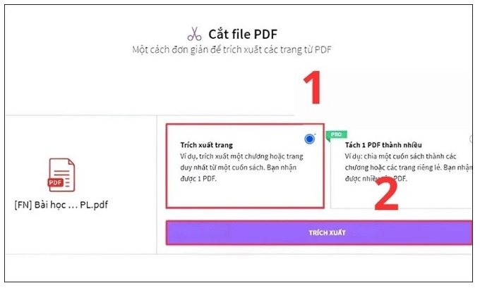 Bước 3: Bạn hãy thực hiện chờ đợi cho đến khi file PDF được tải lên hoàn tất. Sau đó, bạn lần lượt thực hiện việc chọn vào mục Trích xuất trang. Bạn nhấp vào nút Trích xuất để tiếp tục.