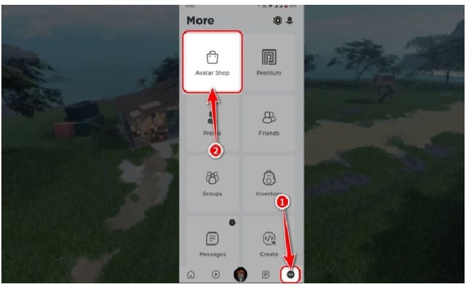 - Bước 1: Bạn Mở ứng dụng Roblox và đăng nhập vào tài khoản của mình. Tiếp tục Bạn chọn Menu và nhấn vào Avatar Shop để bắt đầu mua sắm.