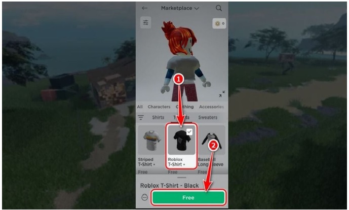 - Bước 3: Sau khi Bạn đã chọn được mẫu áo yêu thích, bạn tiến hành mua áo. Hoặc là đối với các mẫu miễn phí, bạn chỉ cần nhấn nút Free ở trên màn hình là được.