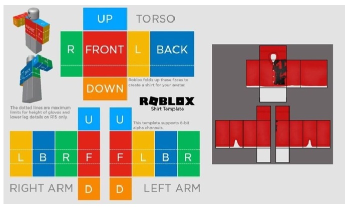 Bước 1: Bạn cần tìm kiếm và tải về một hình ảnh mẫu áo thun Roblox để làm nền. Hình ảnh này sẽ giúp cho bạn hình dung được vị trí các phần trên áo sẽ hiển thị ở trên avatar của bạn như thế nào là một Roblox T shirt cute hay Roblox T-shirt boy hay T-shirt Roblox girl. Dưới đây là những kích thước nền để làm khung áo, bạn có thể tùy ý thiết kế miễn sao mình thấy hợp.