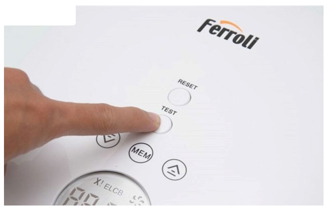 Tiếp theo, bạn lần lượt bấm vào các nút Test > ELCB > Reset. Được theo đúng thứ tự để đảm bảo được cho máy nước nóng đang được hoạt động bình thường.