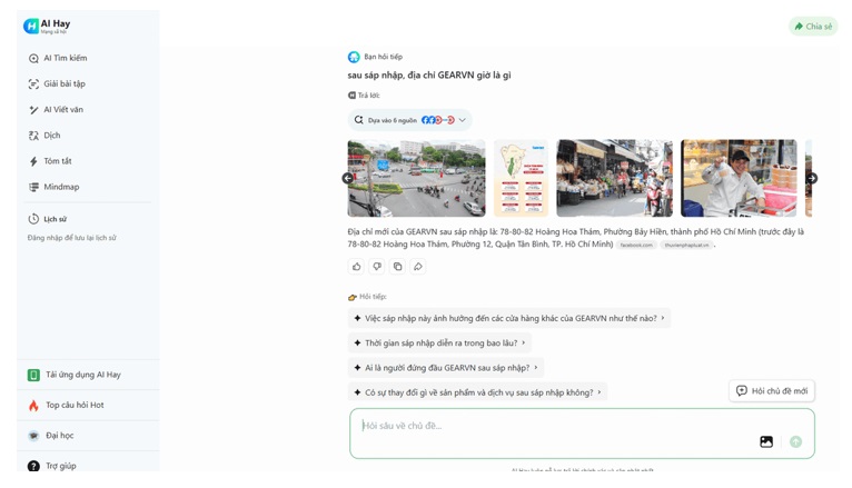 Công cụ AI Hay được thiết kế chuyên biệt cho việc dùng để tra cứu thông tin địa danh hành chính Việt Nam. Điều này đặc biệt rất hữu ích trong bối cảnh các đợt sáp nhập như hiện nay. Nó cho phép bạn tương tác được chính bằng ngôn ngữ tự nhiên và nhận kết quả tức thì.