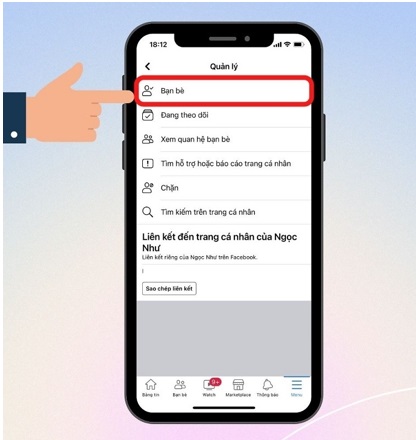 Bước 4: Ở tại giao diện Quản lý thì bạn hãy chọn mục Bạn bè để tiếp tục.