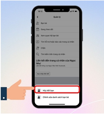 Bước 5: Khi những tùy chọn mới được hiển thị thì bạn chỉ cần nhấp vào mục Hủy kết bạn.