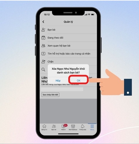 Bước 6: Cuối cùng thì bạn nhấn nút Ok để xác nhận lại hành động mà muốn hủy kết bạn là xong nhé.