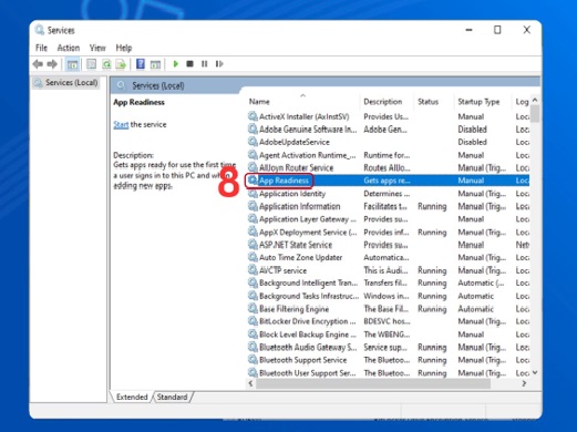 Bước 3: Tiếp tục bạn thực hiện nhấp chuột phải vào mục App Readiness. Bạn thực hiện chọn Open Services.