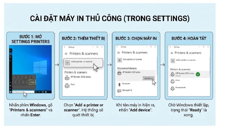 Cách thực hiện cài đặt máy in cho máy tính Windows (dành cho Win 10, 11)