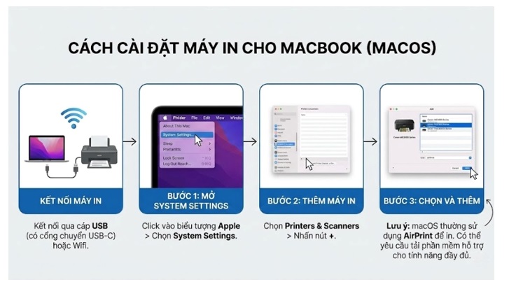 Lưu ý: macOS thông thường dùng công nghệ AirPrint để in mà bạn không cần phải cài driver phức tạp.