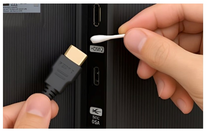- Thực hiện việc rút cáp ở cả hai đầu và vệ sinh bụi bẩn ở trong jack cắm bằng khăn khô hoặc là bình khí nén.