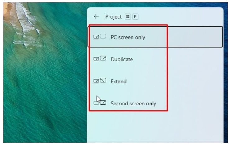 Thực hiện việc nhấn vào tổ hợp phím Windows + P và hãy chọn một trong các chế độ bên dưới: