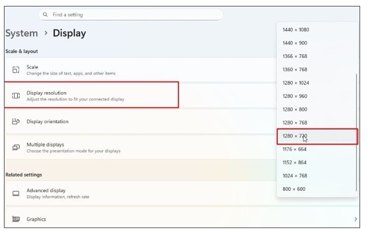 - Bước 2: Bạn hãy hạ độ phân giải xuống mức 1024×768 hay là 1280×720 ở tại mục Display Resolution.