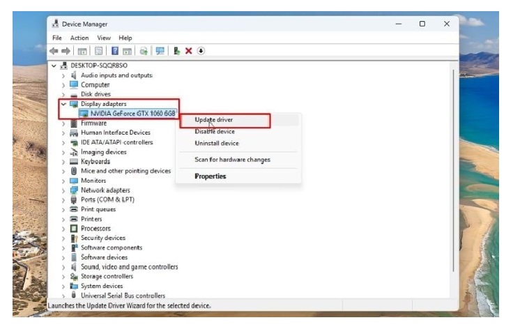 - Bước 2: Bạn hãy search mục Display Adapters. Hãy bấm chuột phải vào ở tên card đồ họa và bấm chọn Update Driver.